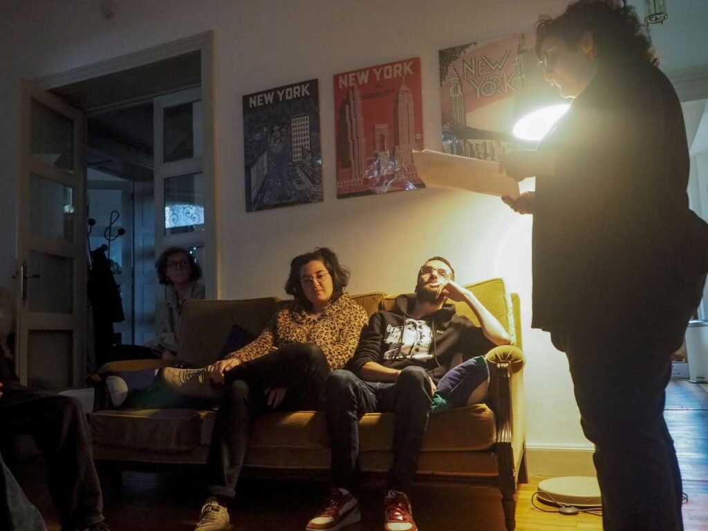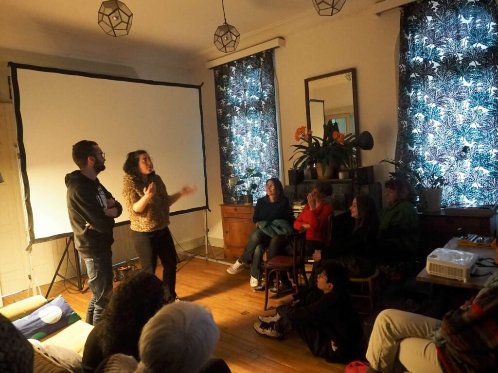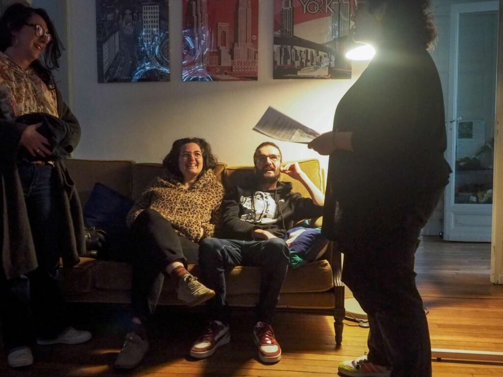 Pour la troisième fois, la Coloc Marbeau s’est transformée en salle de cinéma. Nous avons reçu Raphaële Raffort et Matthias Simonet, le couple auteur de « LE DERNIER SOIR ». Nous avons longuement discuté avec eux d’abord devant l’écran après la projection, puis autour d’un verre par la suite, une assiette à la main.